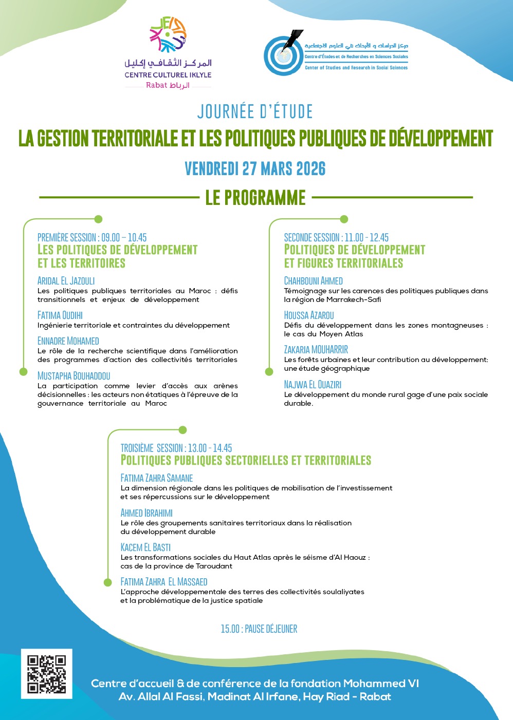 À la suite de la rencontre organisée par le CERSS à Tanger les 23-24 janvier 2026, en coopération avec l’ENSI et l’ADS, sur le thème « Les sciences sociales et le développement », la démarche adoptée entendait approfondir la problématique par une seconde rencontre consacrée à un sous-thème d’importance axiale portant sur « La Gestion territoriale et les politiques de développement ».